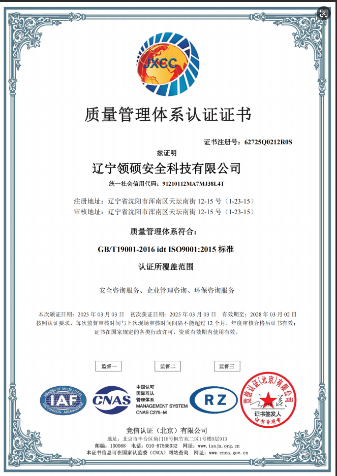 遼寧領(lǐng)碩安全科技有限公司位于遼寧省沈陽市渾南區(qū)天壇南街12-15號,注冊資金300萬。主要經(jīng)營范圍為遼寧省范圍內(nèi)的安全環(huán)保咨詢,生產(chǎn)安全事故應(yīng)急預(yù)案技術(shù)服務(wù)、企業(yè)雙重預(yù)防機制建立、履職能力評估、企業(yè)科研項目安全部分服務(wù)等的技術(shù)服務(wù)機構(gòu)。現(xiàn)有員工12人,其中包括5名遼寧省級安全生產(chǎn)專家。成立于2022年4月18日,在盤錦市成立至今已經(jīng)為30余家企業(yè)提供了安全環(huán)保技術(shù)咨詢。 業(yè)務(wù)范圍包括:技術(shù)服務(wù)、技術(shù)開發(fā)、技術(shù)咨詢、技術(shù)交流、技術(shù)轉(zhuǎn)讓、技術(shù)推廣,安全咨詢服務(wù),環(huán)保咨詢服務(wù),標準化服務(wù),企業(yè)管理咨詢,科技中介服務(wù),工程管理服務(wù),特種作業(yè)...查看更多
